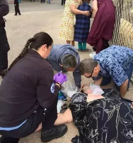但是这个昏倒在地不省人事的美国人已经心脏骤停,情况非常危险,如果不及时进行抢救,很可能救护车没有到达他就已经支撑不住了。
