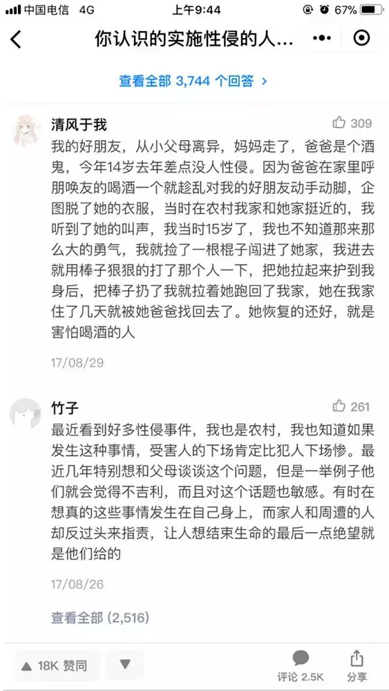 更令人意外的是,评论的大多数人,都描述了现实中的性侵,这大概是人们第一次这么大规模地公开身边的性侵事件。