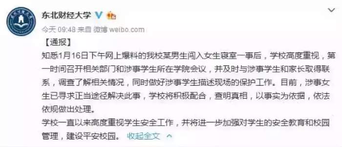 可笑的是,东北财经大学的第一反应是让辅导员通知女生删除朋友圈,随后学校方面对新闻事件的发酵进行了一定压制。