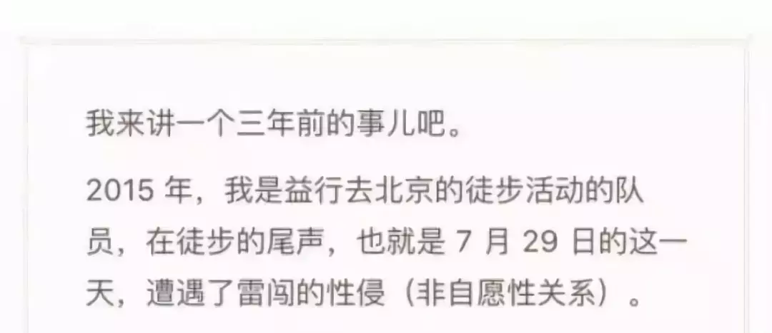7月22日,23岁的女孩遥遥(化名)发文举报公益人雷闯性侵了她。