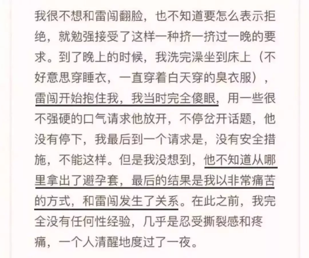 即使遥遥强烈反抗,雷闯依然不罢手,甚至对这位没有任何性经验的20岁女生拿出了事先就准备好的避孕套。