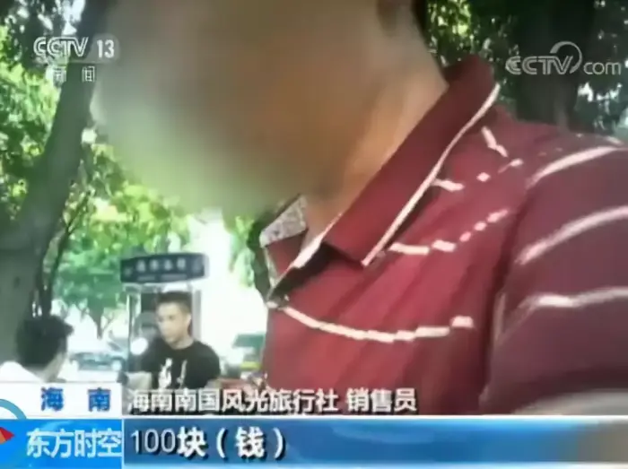 推出这一旅行套餐的海南南国风光旅行社在游客上车后,收取100元旅行费,并让游客在标注有980元(旅游局规定价格)的合同上签字。同车随行的游客除了两位不参与购物的老人交了400元,其余大部分游客都只交了100元,还有的甚至没有交钱。