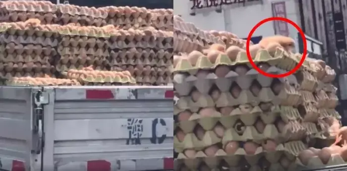 国内一运送鸡蛋的货车,烈日暴晒下孵化出小鸡