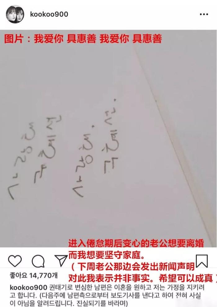 ▲ 具惠善在SNS上的发言
