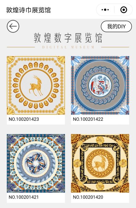 而敦煌纹样的丝巾逐一呈现,让人感叹于这些平日里在博物馆中沉睡的壁画图案,居然在实物上,彰显了如此对称的美,带着一丝穿越千年的神秘。