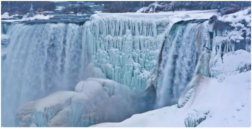 在极低温度的影响下,尼亚加拉大瀑布,成了被冻住的冰山。