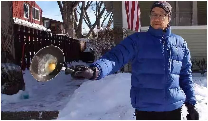 到底有多冷呢,不怕死的美国人做了一个实验,将鸡蛋打入锅里,没想到刚到室外不到5秒钟,鸡蛋冻……冻住了。