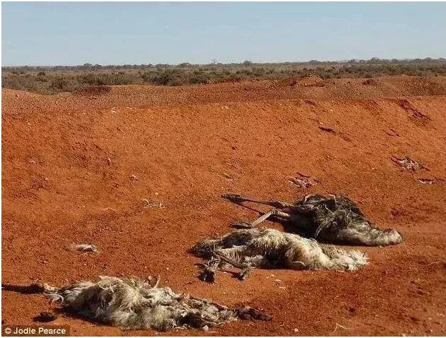 还是因为高温,在饥渴中饿死的成群牛羊。