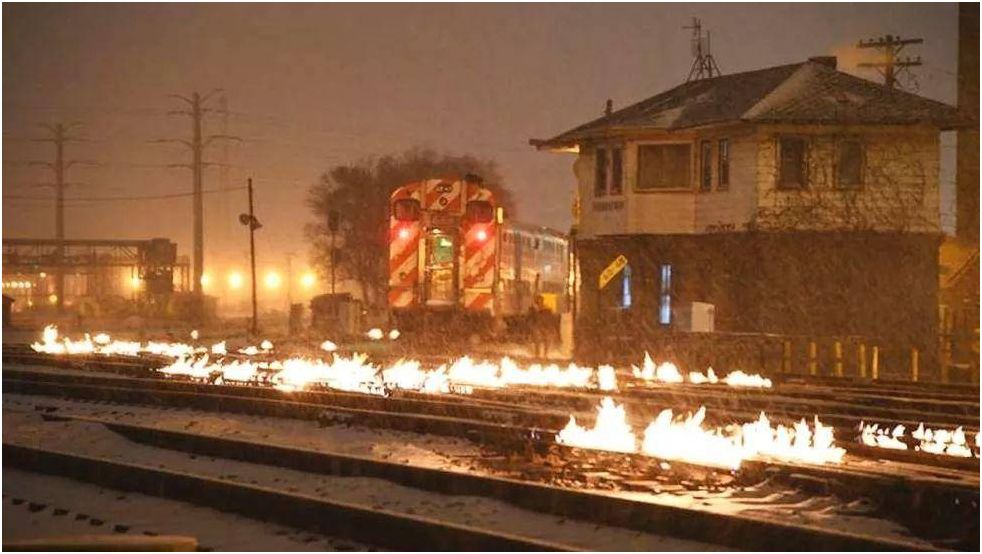 因为寒冷收缩,甚至冻裂的铁轨没法正常投入工作,铁路工作人员只能点燃浸泡过的煤油的绳子使铁轨复原。