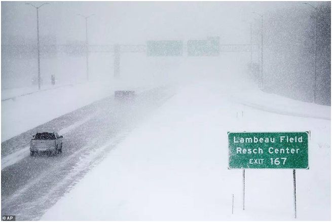 出门就像渡劫,威斯康星州的狂风暴雪肆虐,连路牌都看不清了。