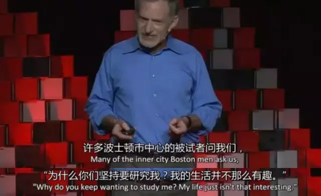 研究从1938年开始,共追踪了724个人。这些人分为两类,一类是哈佛的大学生,毕业后几乎都去参战;第二类是波士顿贫民区的男孩子。当他们成年后,有人成为工人、医生、律师、演员,还有一位当了美国总统;一些人长寿,一些人酗酒,少数精神分裂。有些从底层一路攀升到顶层,有些人走了相反的路。