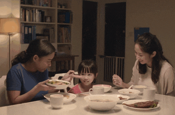孩子喊Lisa名字时,她纠正要喊Lisa阿姨。Lisa开心地笑了,也给孩子夹了菜,孩子很高兴,又恢复了“小甜心”的样子。