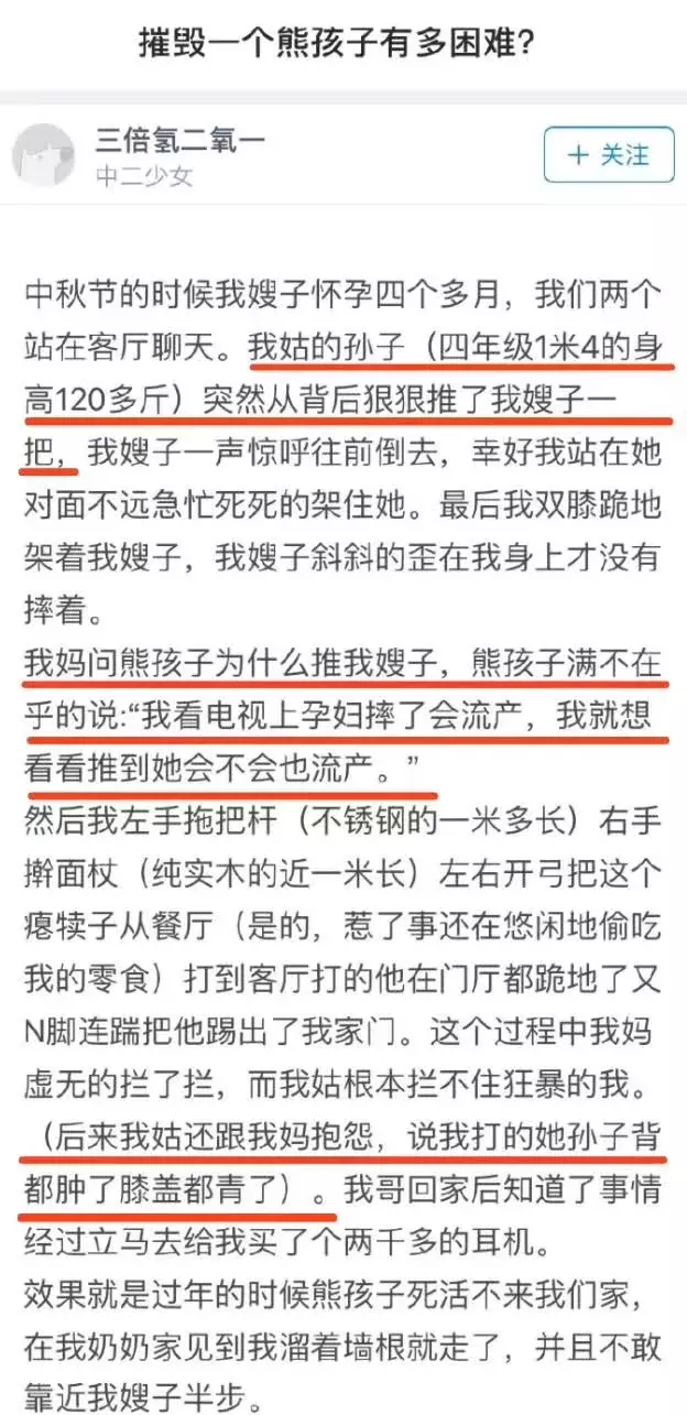 一个已经小学四年级,身高一米四,体重120斤的男孩,到她家里来做客,突然狠狠地从背后猛推怀孕的嫂子,嫂子险些就摔倒在地,幸好当时妹子站在嫂子对面,反应敏捷地迅速扶住,否则后果不敢想象。