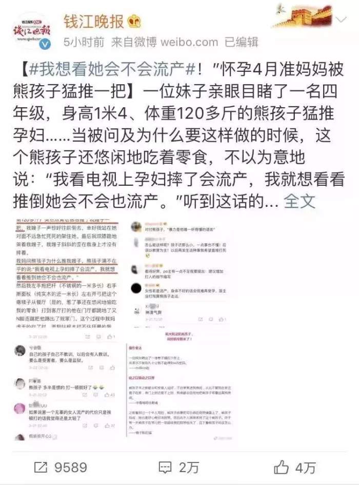 而如果父母平时就强调过这种行为的错误性,那么,哪怕不清楚孕妇流产的严重性,这个小男孩也会明白这种行为的恶劣。