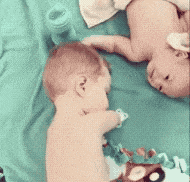 看到自己的弟弟在旁边哭, 没有手臂的小男孩, 努力地用嘴叼着奶嘴递给弟弟