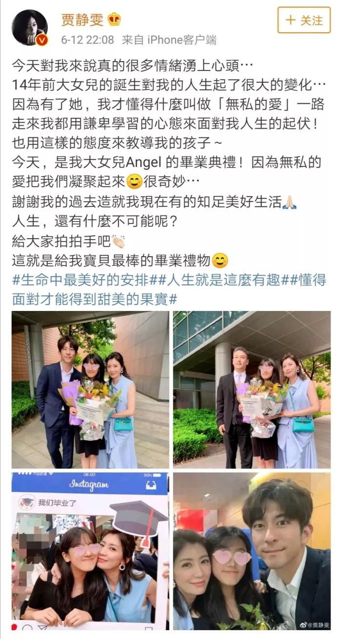 可是为了女儿,贾静雯还是鼓足勇气与前夫一同出现在女儿的毕业典礼上,并且还同框拍照。