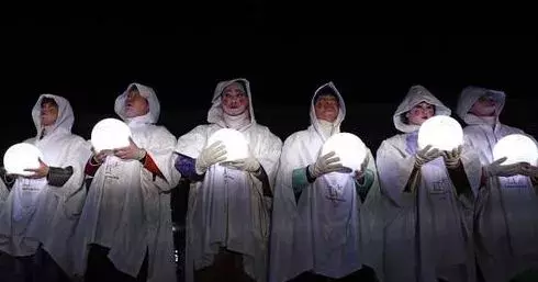 一群带着面具的玩偶,作为穿越生死、穿越阴阳的使者,高举巨型蒲公英,带领逝者走向未知的世界,释放灵魂的恐惧。