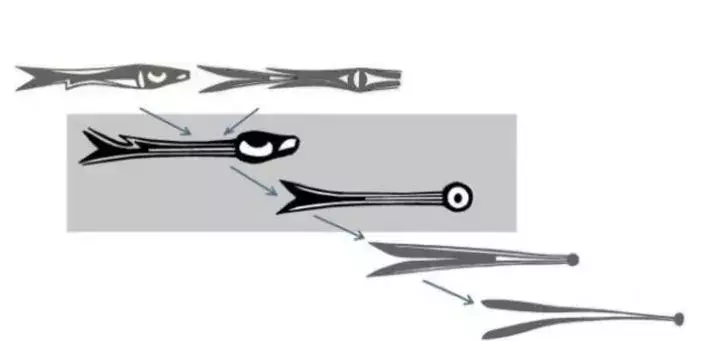 最后鱼纹都变成接近于三角的曲线,当这种曲线大量重复启用的时候,就会产生视觉冲击效果。