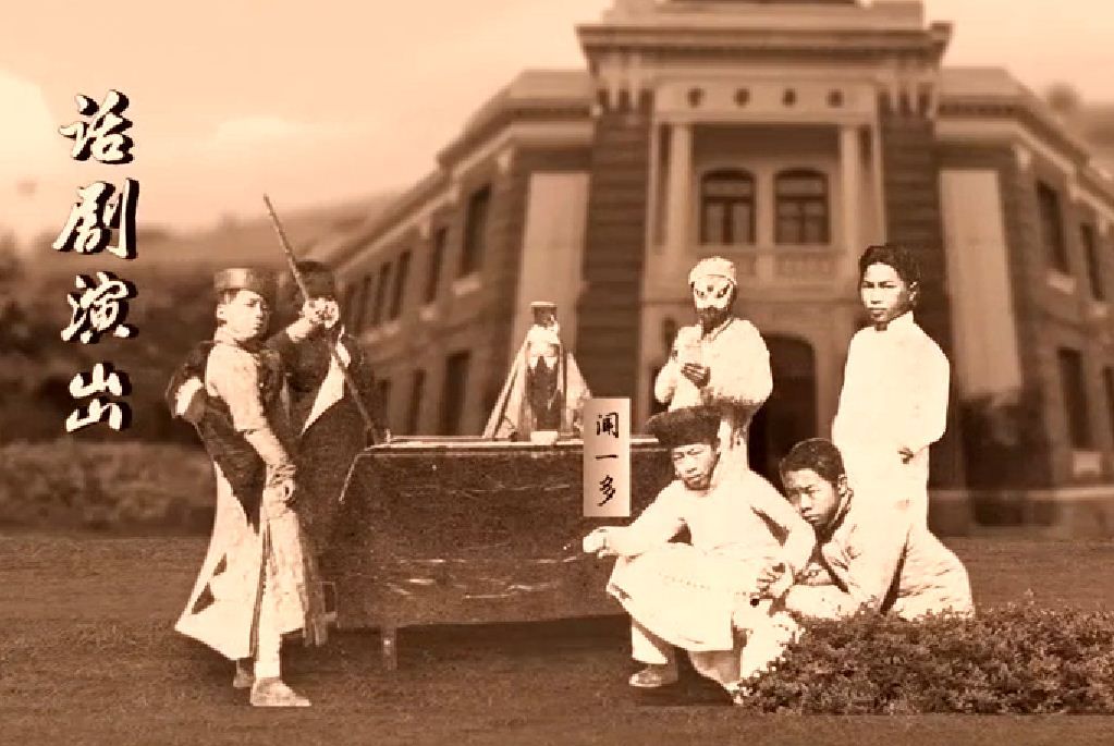 ▲清华举办的话剧演出,前排右二为闻一多 图片来源:清华大学历史人物纪录片《老校长周诒春》