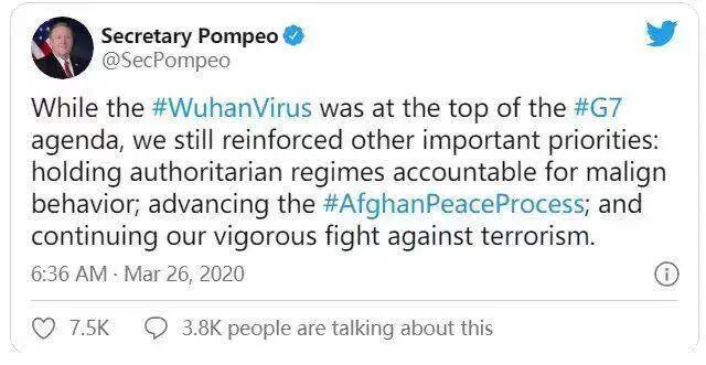 国务卿蓬佩奥多次公开挑衅,宣称病毒来自中国。