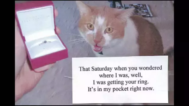 当我发现,你把我给我女朋友的求婚惊喜,藏在了这堆秘密的最后的时候,我高兴地快魂不附体了。我装作什么事都没发生一样……最后,她终于看到了藏在最下面的那个求婚的秘密。她读了一次,又读了一次,然后转身问我 ‘那是我们家的猫吗?’