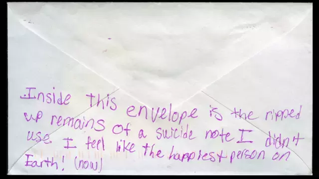 在这个信封里,是我撕掉了的自杀遗书,还好我没有想要用它,现在,我觉得我是这个世界上最开心的人了。
