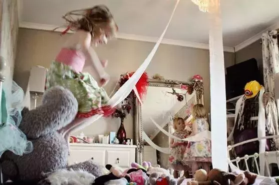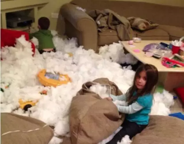 把沙发拆了的姐弟俩