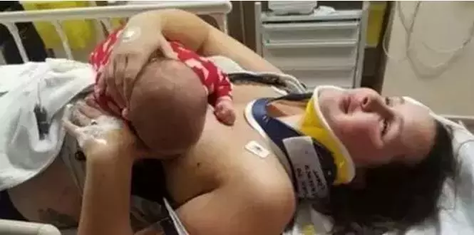 去年6月的时候,新西兰一对母女遭遇车祸,女婴被妈妈保护得很好没有受伤,而妈妈自己的颈部、背部、臀部等多处却严重受伤。。在医院应急救援时,医生准备给妈妈打止痛针,血流不止满身伤痕的妈妈立即拒绝了!她说:这样不好,可能会影响到孩子的母乳质量。