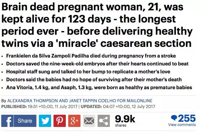 被宣布脑死亡的妈妈体内各个孕育器官仍然在正常地运转,腹中的生命也并没有放弃成长!于是,医护人员在接下来的四个多月里,开始精心关注腹中胎儿的发育生长,为了让腹中的生命降生,病人家属还精心布置了病房,坚持给腹中的胎儿讲话,甚至唱歌。。