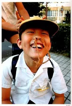 “在拍摄《男子》这集子里的照片的时候,一直被这些小孩子瞧不起呢。他们会冲我叫,喂!梅佳代,你要干什么呀。即便这样,我还是傻笑着去接近他们。就这样,我和他们打成一片。”