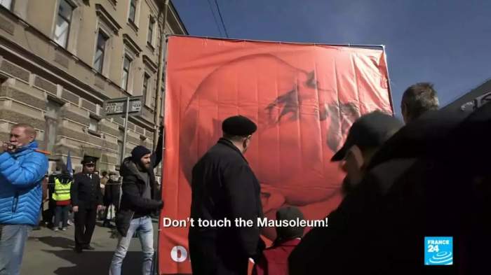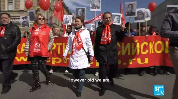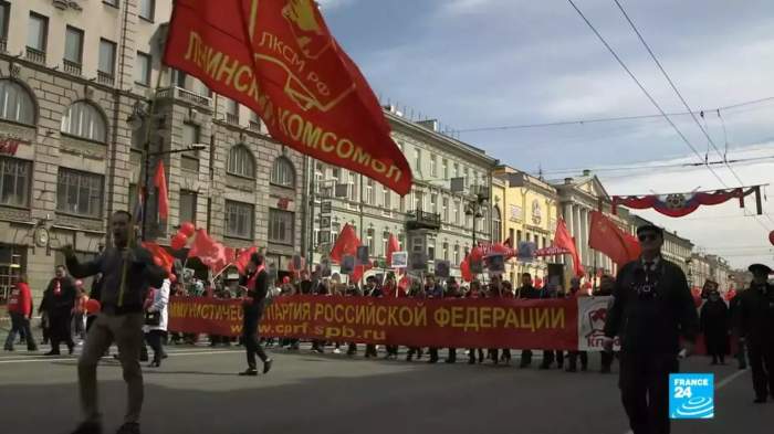 今年5月1日国际劳动节,俄罗斯共产党在圣彼得堡举行游行,反对将列宁墓从红场迁走。
