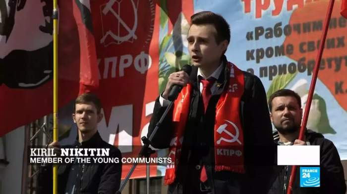 青年共产党员也在游行活动中发言,批评俄罗斯从“核大国”沦为“靠卖自然资源为生的国家”。