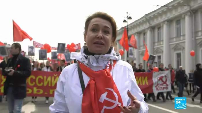 这位妇女名叫伊琳娜·伊万诺娃,圣彼得堡市议会的共产党议员。她过去是一家公司的老板,2000年左右从商界转战政界。她为退伍老兵和退休人员谋福利,努力吸引年轻人加入到共产主义事业中来。