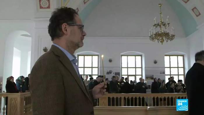 来到教堂参加弥撒的这名男子名叫乔治·奥索根,他的家人曾经是白军移民大潮中的一员。他的曾祖父当过图拉州州长,曾外祖父在革命前是莫斯科市市长。他妻子的祖父曾经是一名白军军官。