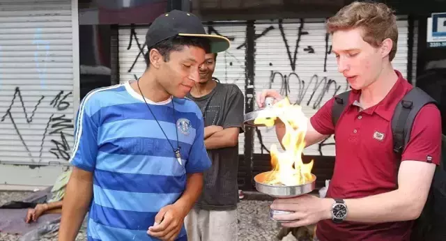 从年初开始,每个周日的早晨,刚刚开始工作的19岁的安德雷和另外七名志愿者走上街头,帮助巴西南部库里巴提市的无家可归者。他们用自己的钱为这些人准备一份三明治。他们不是直接派送食物,而是为这些无家可归者表演小魔术。