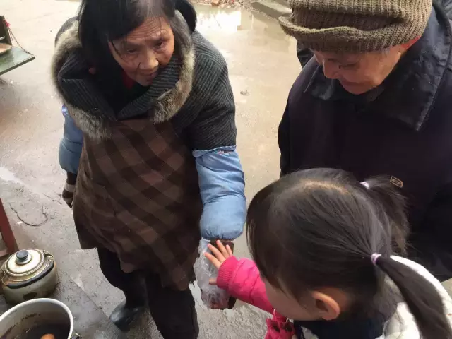 小姑娘要吃的鸡蛋饼卖完了,老人就装了2个茶叶蛋送给她