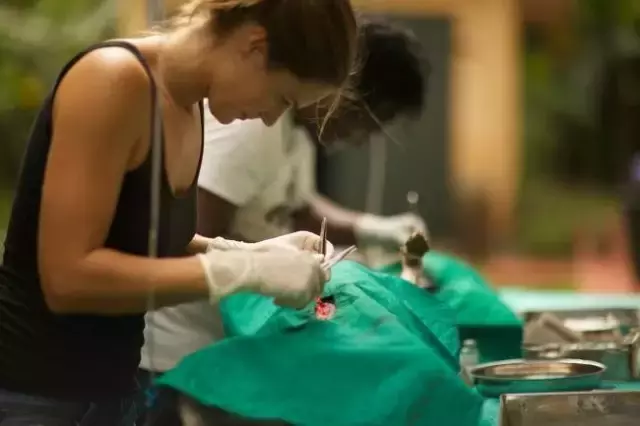 做了18个月,花光了旅费,只得回英国继续工作攒钱。当钱攒够了,她又义无反顾地回到斯里兰卡,继续她的手术计划。最多一天,她为250只狗做了手术。三年多来,她和志愿者救助的狗狗不计其数。