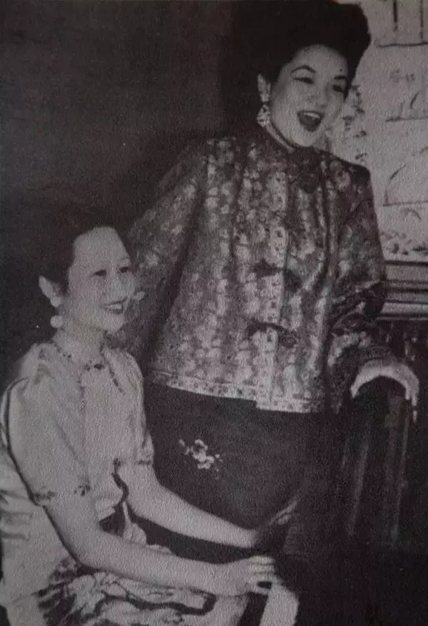 1946年,周小燕(右)与李献敏在伦敦白宫剧场演出前的留影