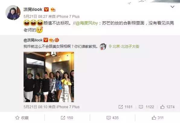 5月20日,邓文迪在北京的家中举办了一场晚宴,邀请了众多大咖级的密友。觥筹交错后,自然少不了合影留念。其中一张包含了李冰冰、苏芒、邓文迪、洪晃等人的合照引起广泛热议。洪晃发在微博上的聚会照,是真正的“全家福”。而时尚教主苏芒发的合影,则裁掉了洪晃。
