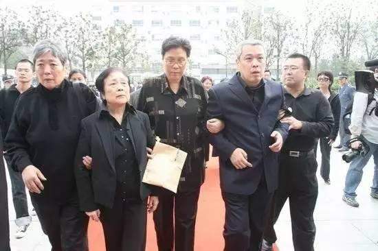 谢晋夫人徐大雯(左二)及小儿子阿四(右二)与亲属前来参加追悼会