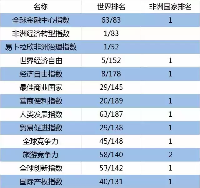 截至2013年,毛里求斯是非洲仅有的人类发展指数被评为“高”级别的国家之一。在绝大部分衡量经济社会发展水平的指标上,毛里求斯在非洲也是首屈一指的。