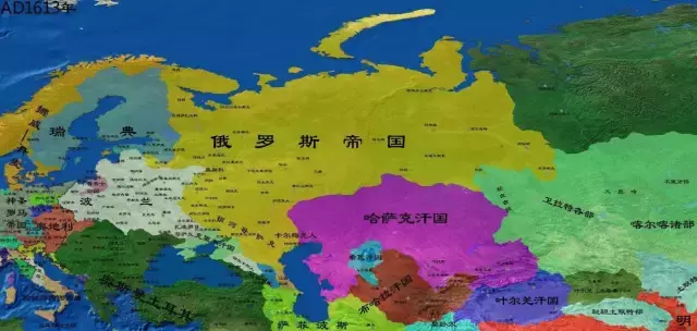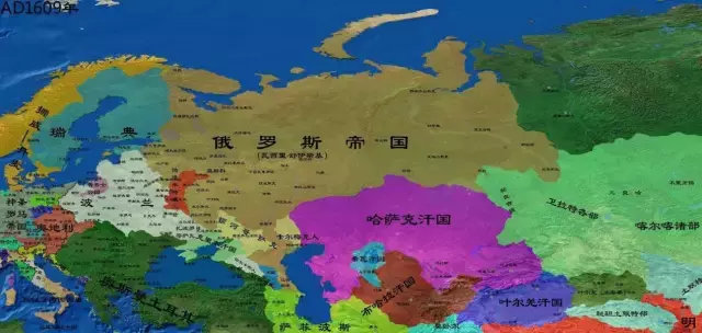 动态图:十六世纪后全球版图变化,北方紫色区域为俄罗斯