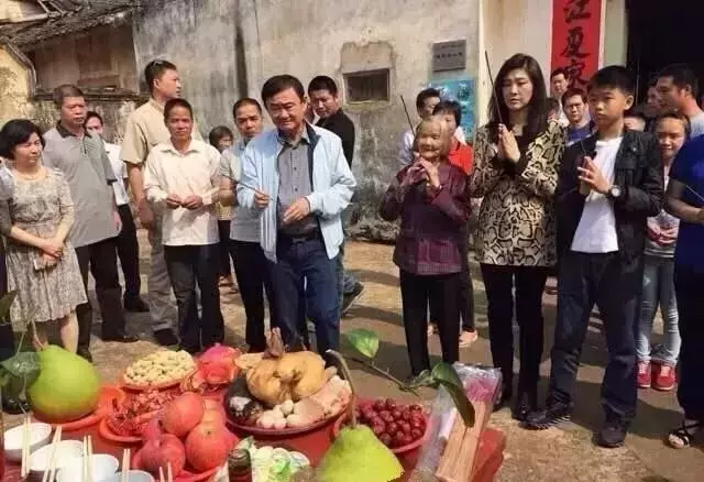 尽管已经是泰国丘家第四代,他信和英拉依然会去中国祭祖。他信在2005年访华期间,以总理的身份到中国广东“寻根”。而英拉也曾在多个公开场合表明自己有四分之一的华人血统。2014年10月31日,英拉和他信及英拉儿子一行人又回到祖籍梅州祭祖。