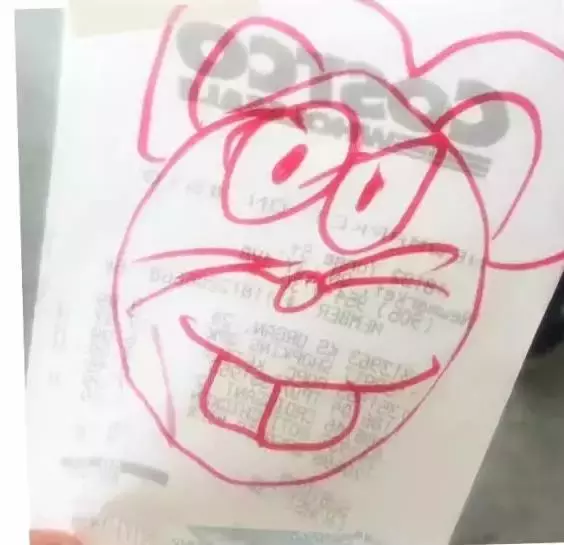 没错,最近美国一家著名连锁超市——Costco的收银小票就上新闻了!真的有人把它们装框收藏诶!只不过大家争着围观的不是小票上的商品价格,而是它背后的笑脸涂鸦~