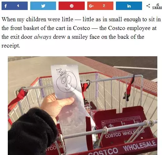 当我还是一个坐在Costco购物车里的熊孩子时,每次到门口服务员总会在收银小票背面给我画个笑脸~