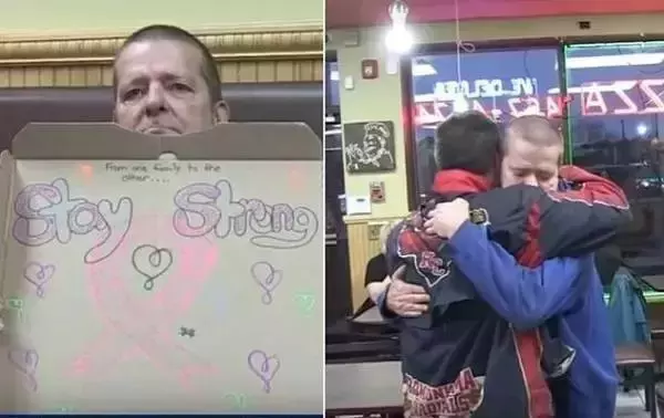 有一天,一个神情沮丧的男子走进店里,老板选择递给他一份爱心披萨,盒子上写着“Stay Strong(要坚强)”,那个男子看到盒子上的字时,忍不住哭了!