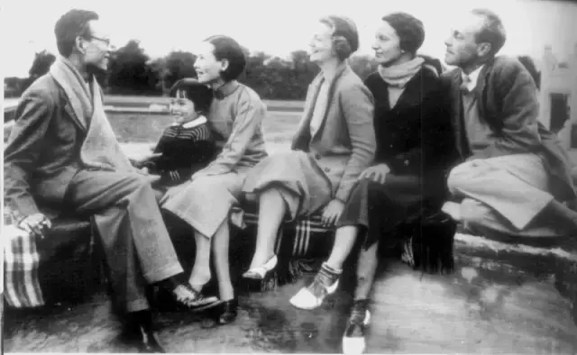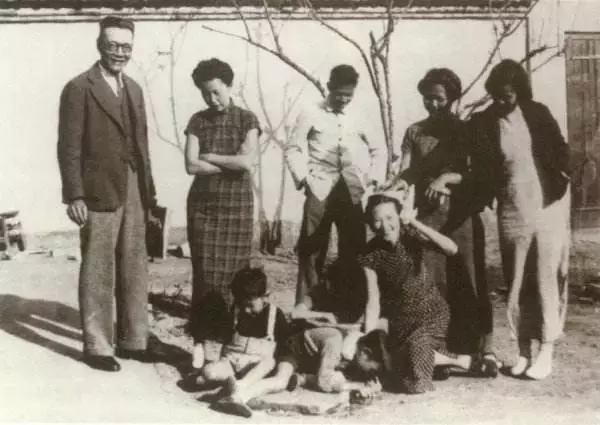 林徽因的客厅,左侧为金岳霖、沙发上为费正清夫妇和梁思成夫妇