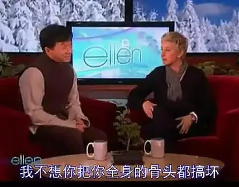 在采访国际功夫巨星成龙时,Ellen又贴心又幽默地说“我不想你把全身的骨头都搞坏了,所以歌手是更安全的职业”,“怂恿”成龙转行去做歌手。