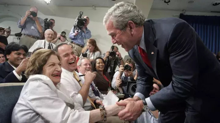 在海伦经历的10位总统中,被她怼得最厉害的要属小布什总统了。