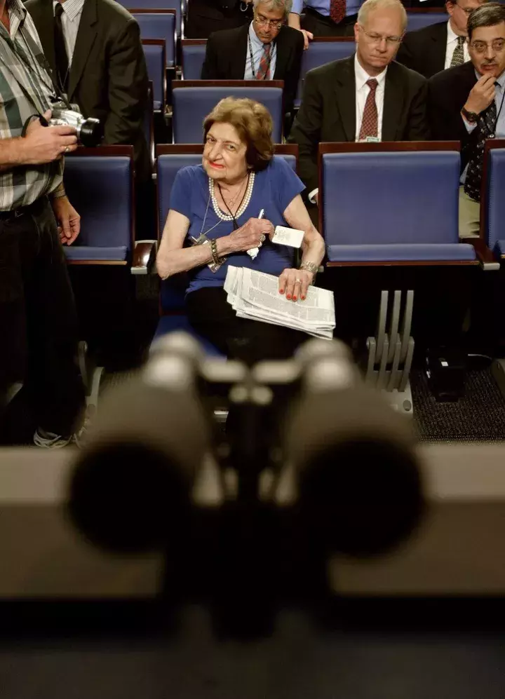 美国新闻界有这样一种说法:白宫有两套不同的新闻规则,一套适用于普通记者,而另一套只适用于海伦·托马斯;美国白宫新闻发布厅只有一个座位刻上了记者的名字,就是第一排中央属于海伦的专属座位;在这几十年里,每次白宫新闻发布会的第一个或第二个问题,都由她来发问。这些无疑都是同行和掌权者们对这位女性表达的敬重之情。